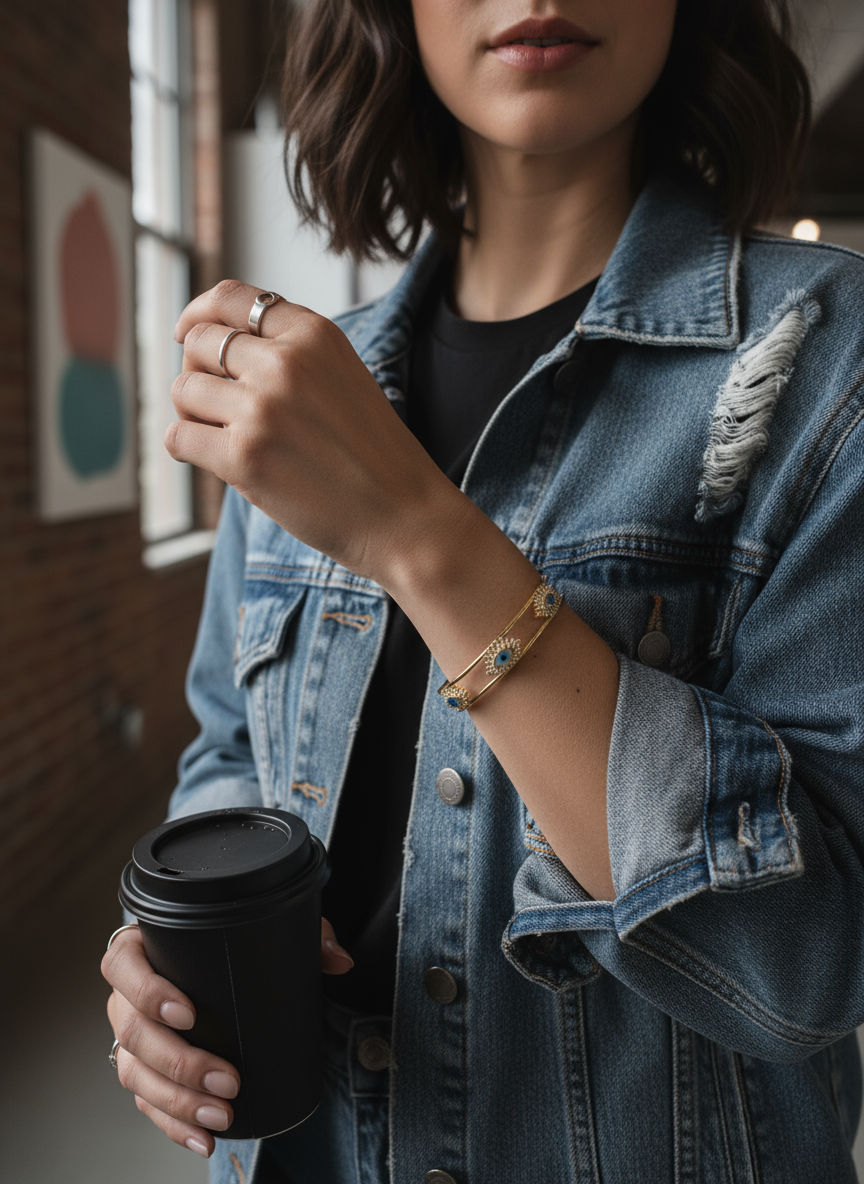 925 Sterling Silver 18k gold filled The Eye bangle.