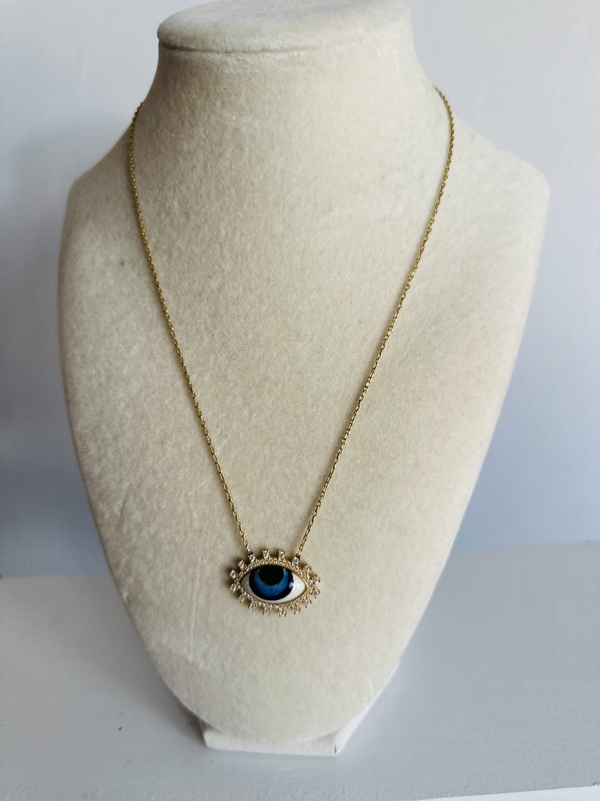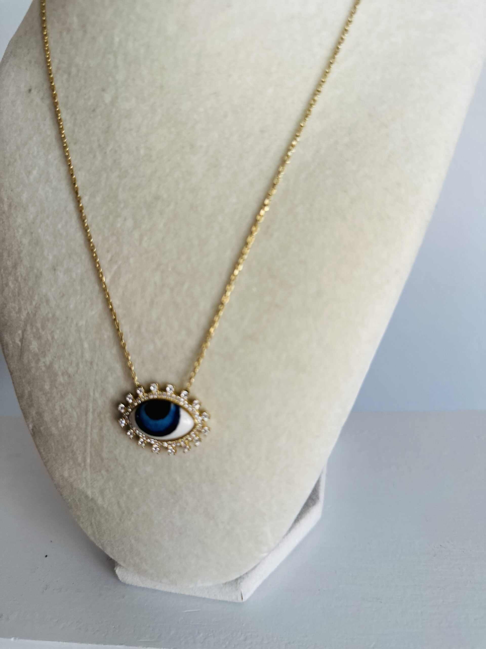 925 Sterling Silver 18k gold filled The Eye necklace in dark blue.